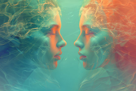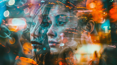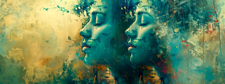 Multiple personality, identity disorder, borderline and Schizophrenia, mental health background. AI generated.