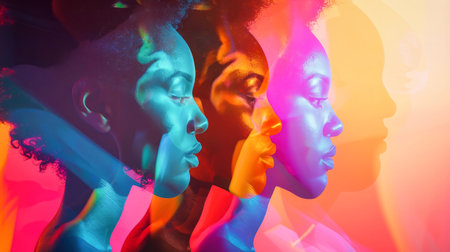 Vibrant artwork depicting four African-American women's profiles, in rich and diverse colors, symbolizing empowerment and culture during Black History Month.