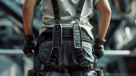 Industrial-Grade Safety Harness: High-Quality Macro Image Showcasing Tough Materials, Secure Clasps, and Maximum Protection for Occupational Safety