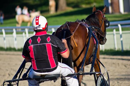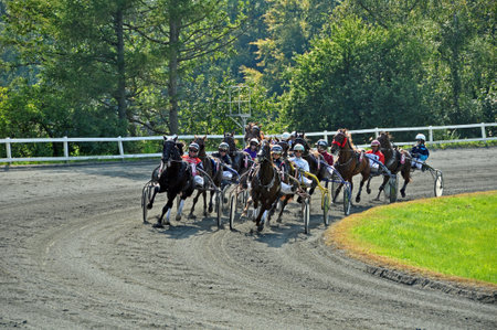 Harness racing. Racing horses harnessed to lightweight strollers.
