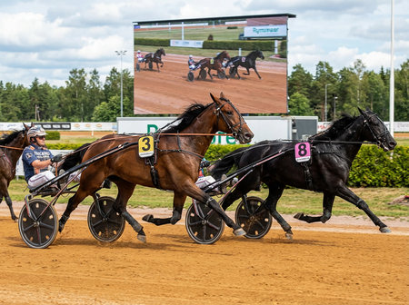 Trotting races at the Brand Park track on Bornholm, Denmark.