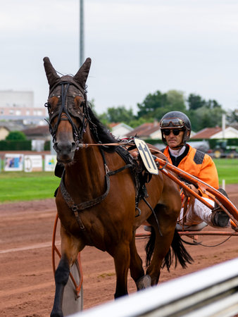 Ploiesti, Romania - October 07, 2018: A trotting horse race held on Ploiesti Hippodrome in Prahova, Romania.