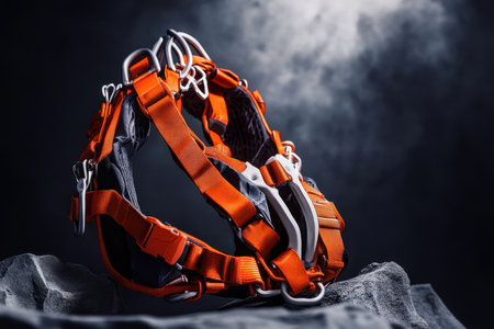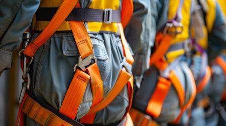 Industrial-Grade Safety Harness: High-Quality Macro Image Showcasing Tough Materials, Secure Clasps, and Maximum Protection for Occupational Safety