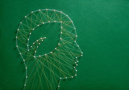 The outline of the head and connected colored threads symbolize neurodiversity, autism or creativity.