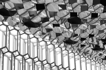 Roof and Facade detail of Harpa Concert Hall in Reykjavik black and white