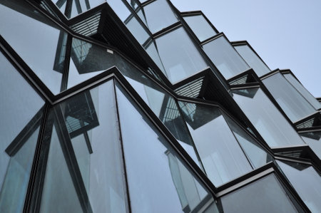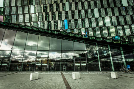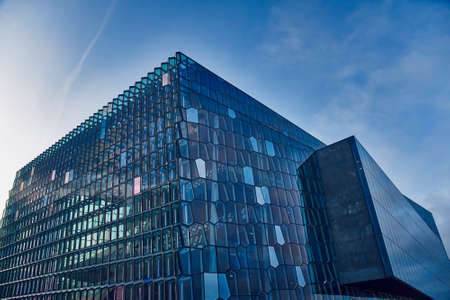 Modern Glass Concert Hall Reykjavik Iceland. Constructed in 2011 of Modern Geometric Shaped Glass Panels