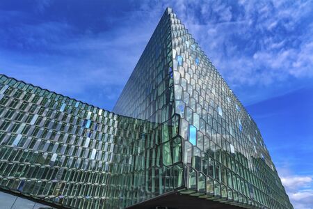 Reyklavik, Iceland - July 18, 2017: Beautiful Icelandic Concert Hall, the Harpa Building in Reyjavik, Iceland