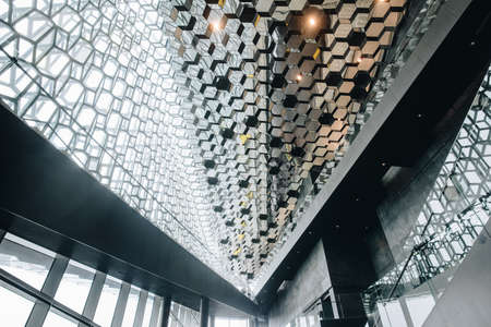 Reykjavik, Iceland - March 26 2016: The architecture inside Harpa concert hall one of the iconic place of Reykjavik, Iceland.