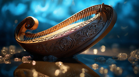 Engraved ancient Greek lyre animates inscriptions in vivid detail with music