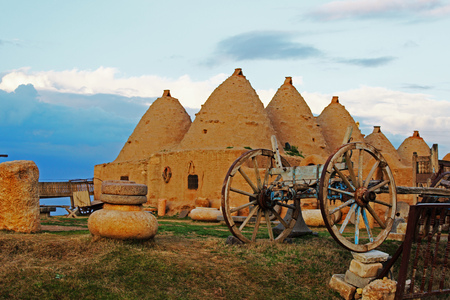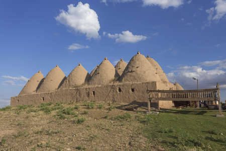 Photo is taken in Harran, Sanliurfa Turkey. This is the photo of the typical Harran house. Houses is made of mudbrick. Door and small windows can be seen too. Conic shaped and mudbrick and conic roofs are special to Harran area. Some special tool are hang