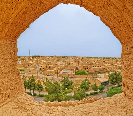 MEYBOD, IRAN - MAY 6, 2015: Aerial view over the city from Narin Castle.