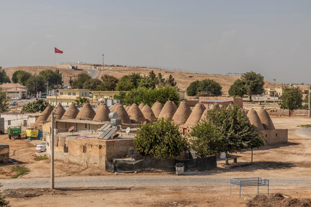 Panoramic view of Harran village, Traditional mud brick beehive houses with cone-shaped roofs, Sanliurfa, Turkey