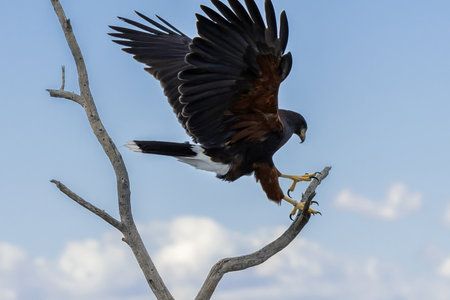 Harris Hawk landing on a branch
