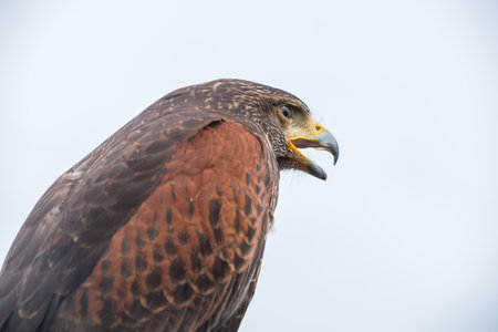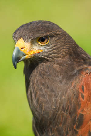 Portrait of a Harris hawk (Buteo unicinctus)