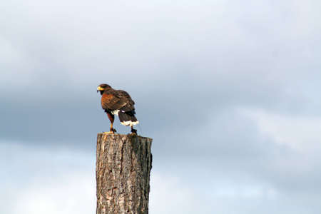 HARRIS HAWK parabuteo unicinctus, ADULT STANDING ON POST