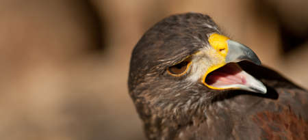 Head of Harris Hawk or Parabuteo unicinctus in side angle view - also called Dusty- or Baywinged hawk