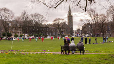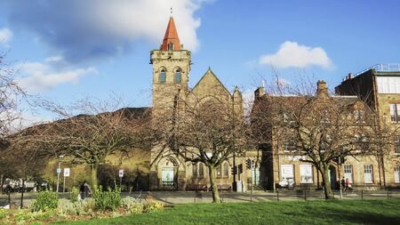 Old Church and square garden in a sunny day at Edinburgh city, Scotland, UK