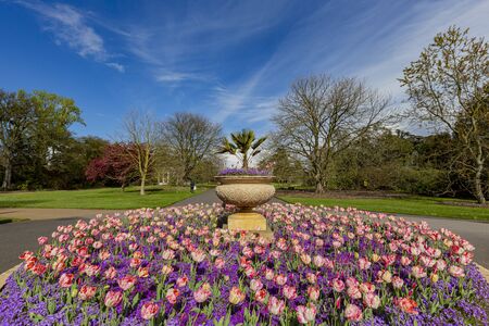 Many tulips blossom in the Kew Garden at Richmond, United Kingdom