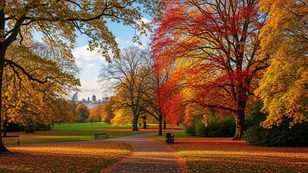 Autumn park in Amsterdam, Netherlands. Panoramic view.