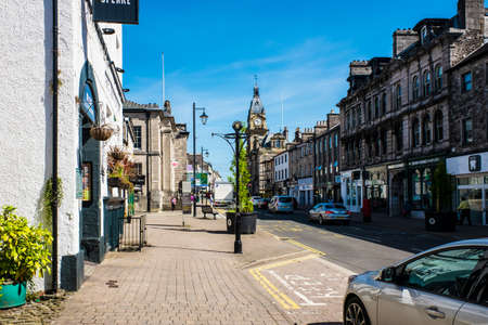 Kendal, Cumbria, UK 28 May 2020 Looking down Highgate towards Kendal the Town Hall
