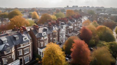 Blonde Sandstone Terrace Houses and Autumn Leaves on Trees on a Residential Street in the Southside of Glasgow Scotland