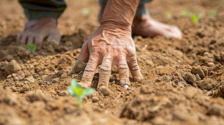 This image captures the intricate details of freshly plowed soil, showcasing the dirt particles illuminated by sunlight, reflecting the essence of agriculture.