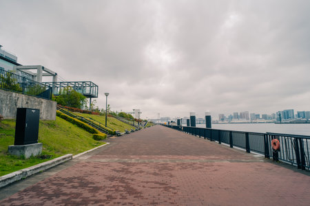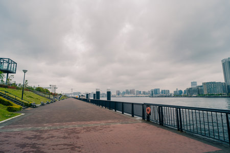 Tokyo, Japan - November 15, 2024: Odaiba island embankment in Tokyo