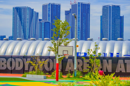 tokyo, japan - 2 august 2025 Toyosu Market Rooftop Greening Plaza. High quality photo