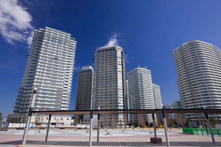 Blue sky and apartment complex. Shooting Location: Nishi Ward, Yokohama City