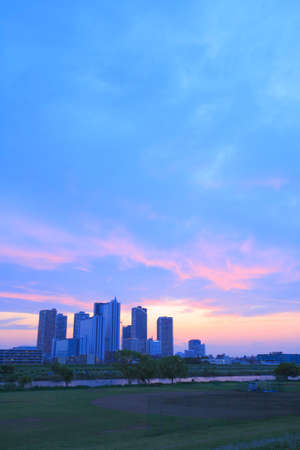 City silhouette shining at dusk. Shooting Location: Koto Ward, Tokyo
