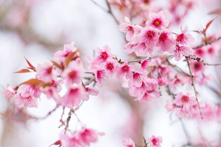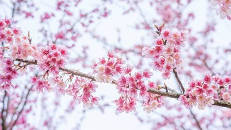 Beautiful wild Himalayan Cherry ( Prunus cerasoides ) name Sakura in Thailand blooming on the tree