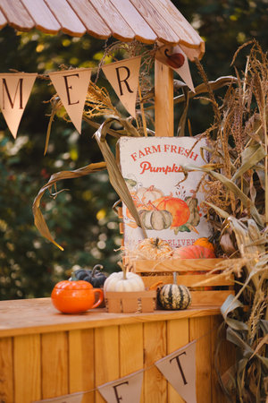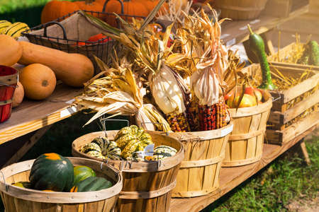 Autumn harvest at a farmers market. Harvest festival in the countryside.