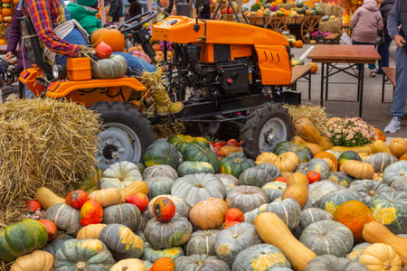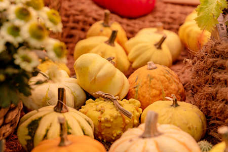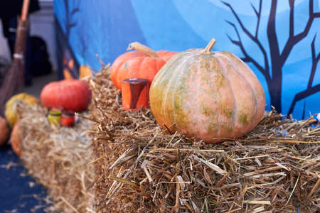 pumpkins in honor of the celebration of autumn and Halloween. festival of vegetables