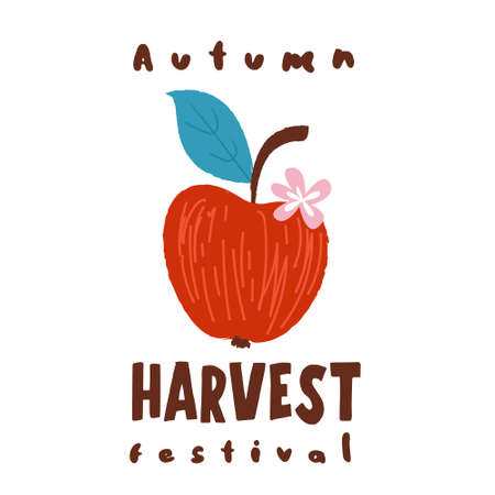 Harvest festival. Vector on a white background. Red ripe Apple.