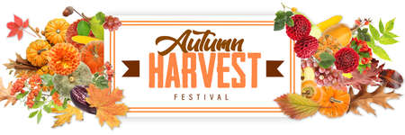 Harvest Festival banner with autumn vegetables. Harvest fest poster design.