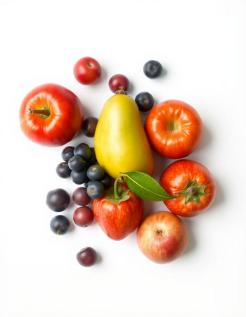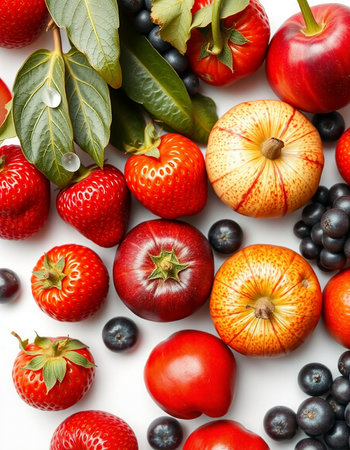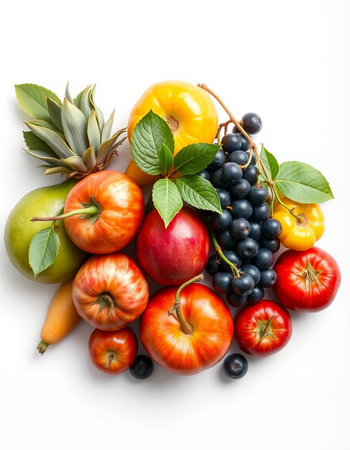 A vibrant arrangement featuring assorted fruits and vegetables, showcasing their natural beauty and freshness. Perfect for culinary and health-themed projects.