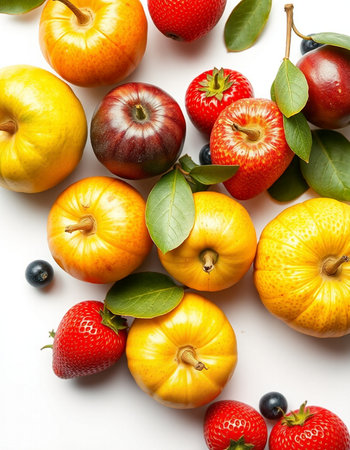 Fruits on a white background with copy space for your text.