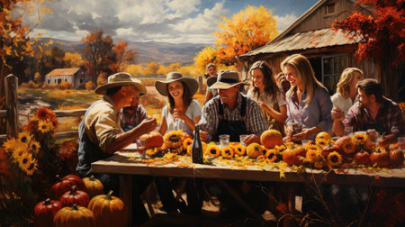 Autumn harvest festival, bounty of the earth, community gathered