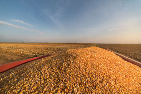 Corn grains in tractor trailer after harvest