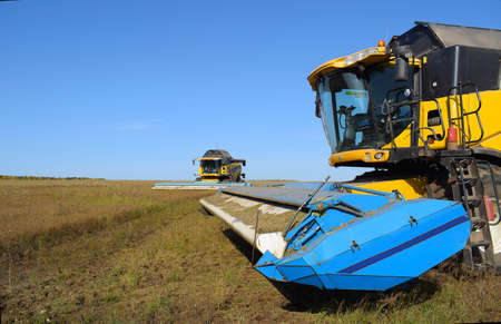 Harvesting of soy bean field in the summer