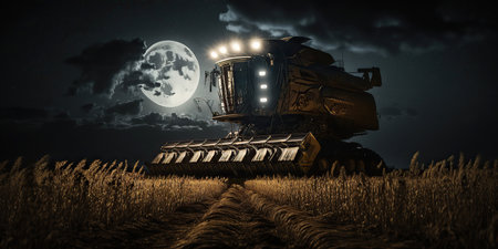 Ai generated illustration wheat harvester maneuver at night