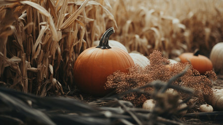 Harvest festival, pumpkin, corn harvesting, happy Thanksgiving Day background, AI Generated