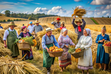 Autumn harvest festival, bounty of the earth, community gathered