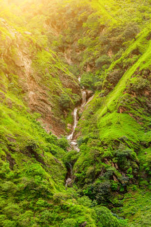 Ascending from Kinja village. Trekking in Nepal Himalayas. EBC (Everest base camp trek) trail between Jiri and Lukla - lower part of Everest trek. Nepal.