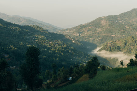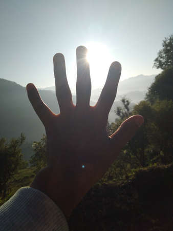 Sun rays falling on a valley located in Uttarakhand.