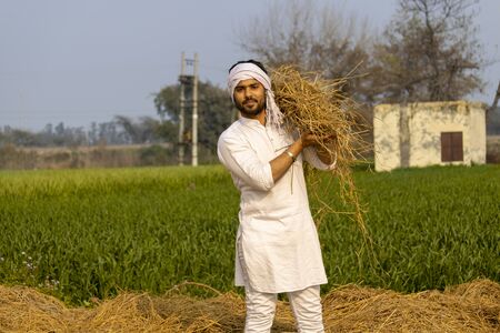 Indian farmer with fodder on his shoulder