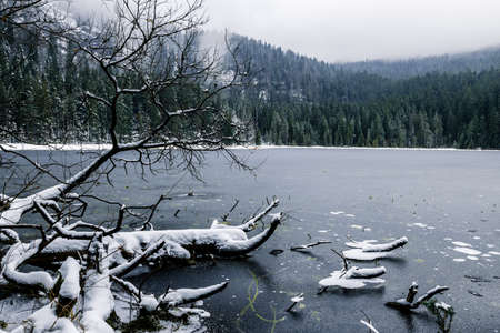 Winter landscape in the Bohemian Forest. Black lake, Sumava National park, Czech Republic.