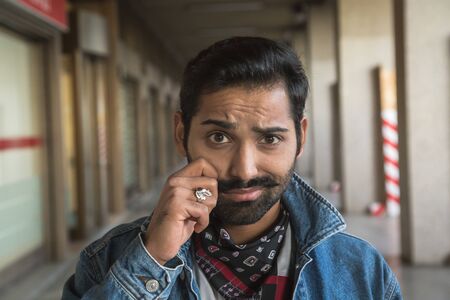 Handsome Indian man posing in an urban context. Street fashion and style.