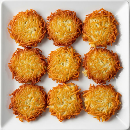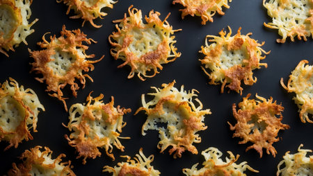 AI Generated. Potato Latkes Crispy golden hash browns on black background