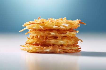 close up of golden swiss rosti potato pancake food background